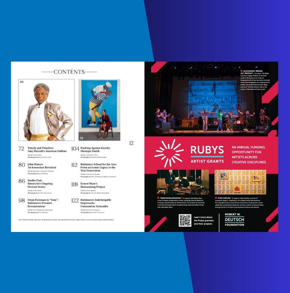Issue 20 celebrates an Iconic milestone for BmoreArt in reaching our 20th issue and recognizes many of Baltimore’s great artists and achievements. This issue features Iconic artists like John Waters, Amy Sherald, Shinique Smith, and Ernest Shaw, 14th Librarian of Congress Dr. Carla Hayden, and Emmy- Grammy- and Tony-award winning performer André De Sheilds, and Ultra Naté, among others.