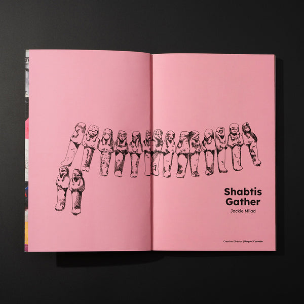We’re excited to announce the release of Shabtis Gather: Jackie Milad, a stunning, full-color, 200-page publication celebrating the work, process, and cultural impact of Baltimore-based artist Jackie Milad. Featuring over 150 images of Jackie’s vibrant mixed-media collages, this book offers a layered and intimate portrait of her evolving practice. Her work explores themes of identity, migration, and ancestral memory through bold textures, rich symbolism, and dynamic composition. Shabtis Gather is the first publication to present Jackie Milad’s archive at this scale and depth.